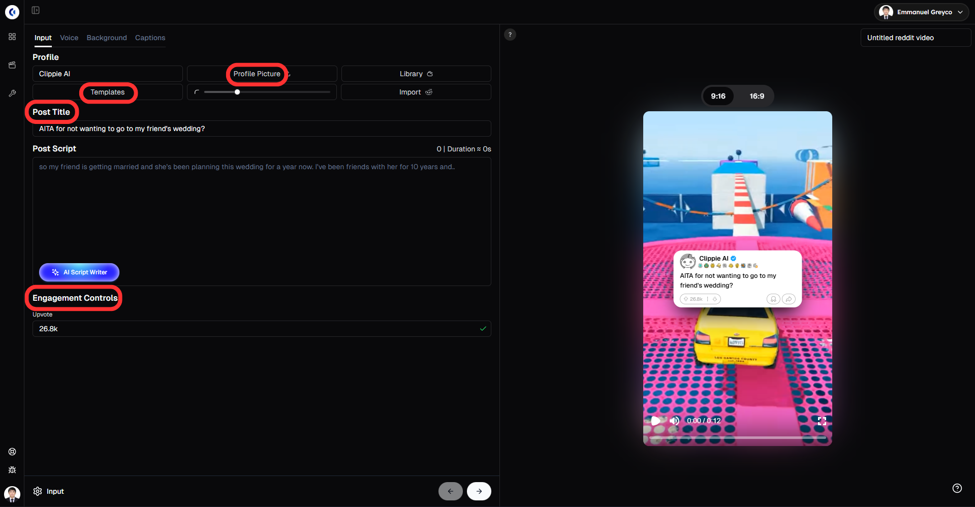 Change the Reddit intro template, add animations, and adjust the engagement controls such as the number of upvotes.