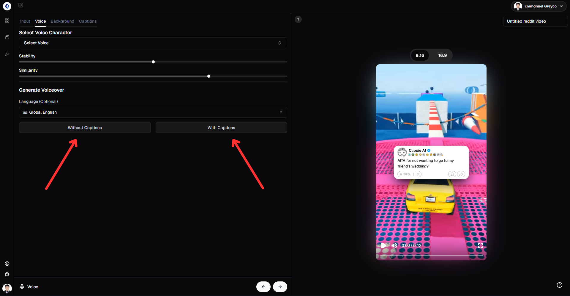 Q: Can I upload my own voice instead of using AI voices? A: Currently, Clippie AI supports AI-generated voices, but you can add custom audio files in the Background tab for music or sound effects.