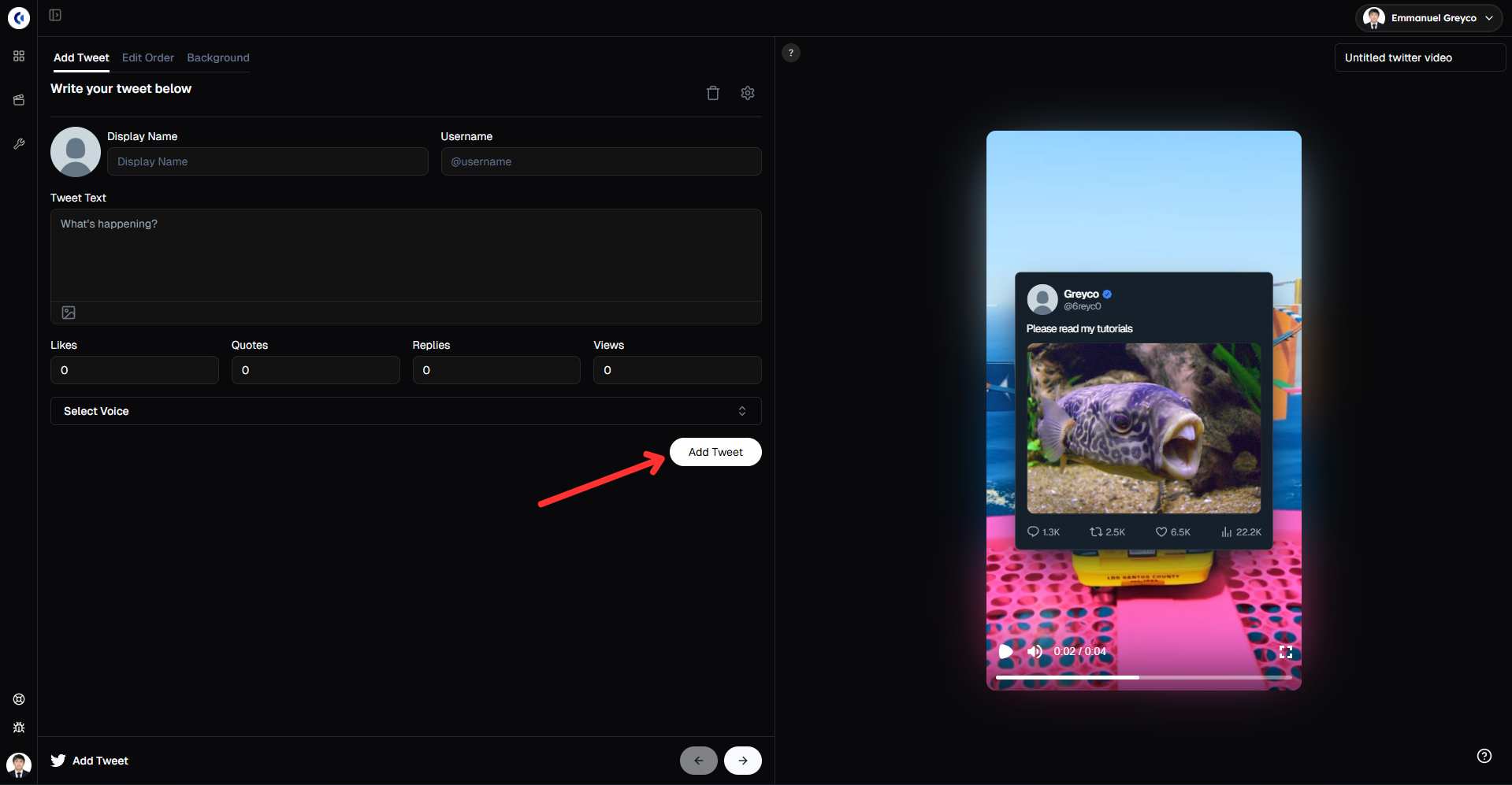 Select your preferred voice and click Add Tweet.