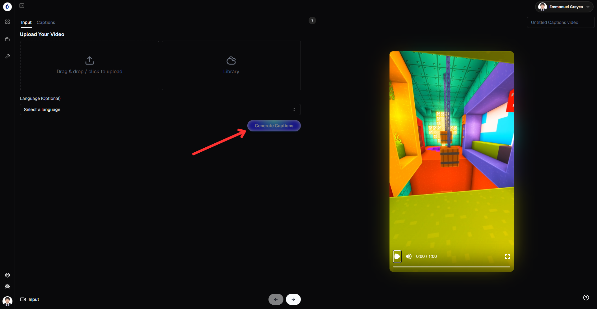 Click Generate Captions to let the AI create captions for your video.