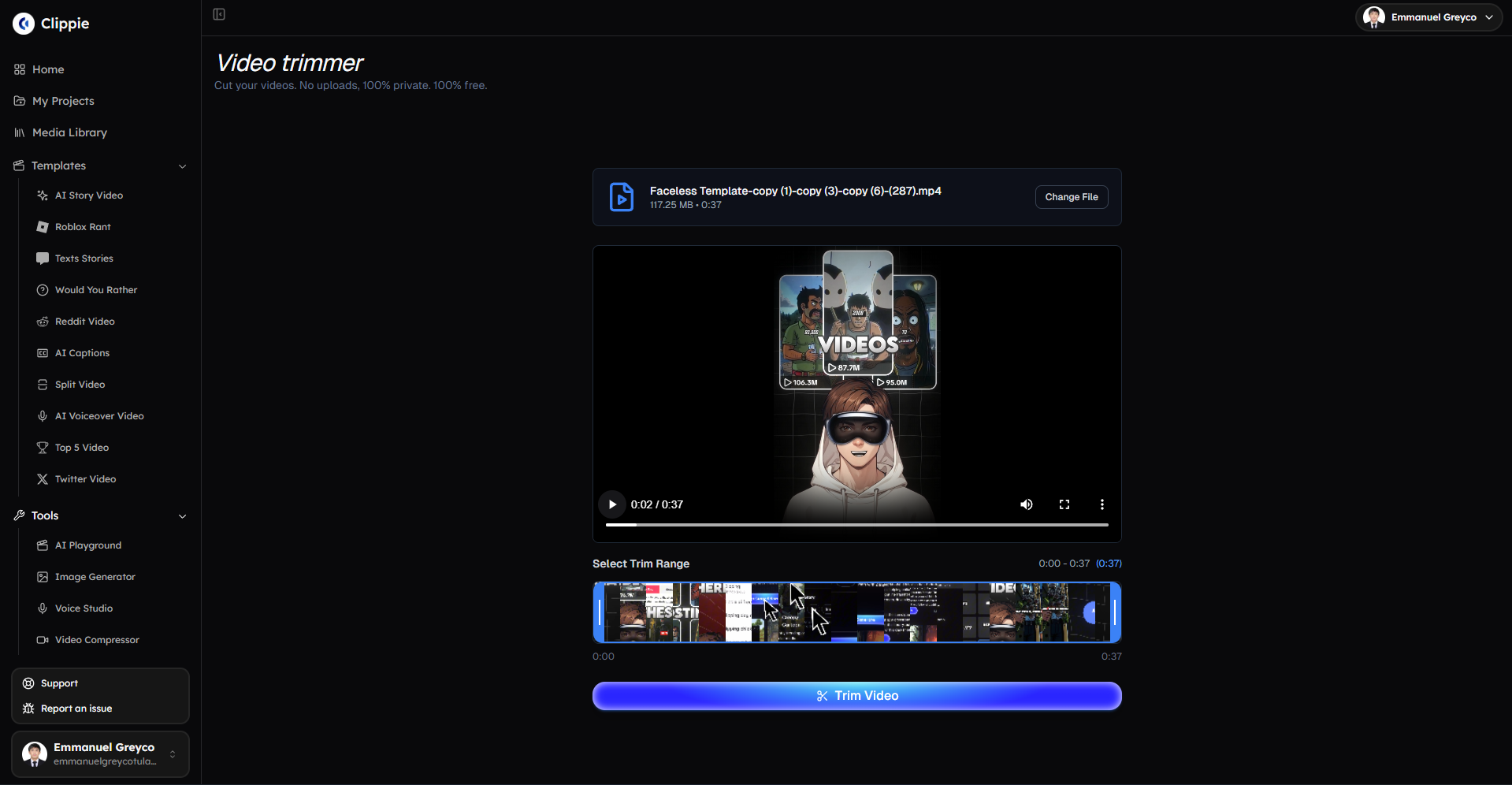 The Video Trimmer in Clippie AI lets you easily cut and adjust your videos without needing advanced editing skills. You can remove intros, outros, mistakes, or unnecessary sections in just a few clicks, all within a simple and fast workflow.